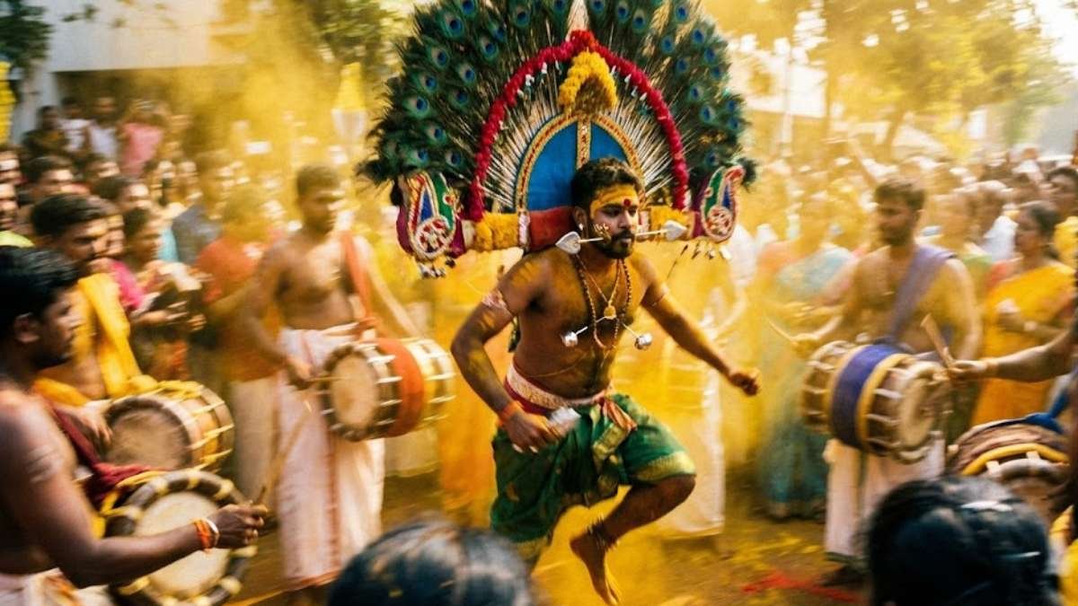- Kavadi Attam: Devotees carrying the Kavadi (a decorated arch) on their shoulders, often dancing in a trance state.